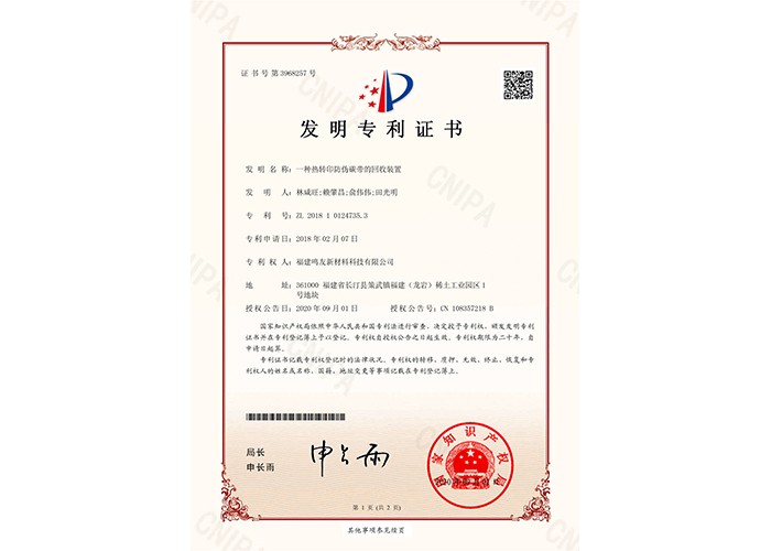 A recycling device for thermal transfer anti-counterfeit ribbons (invention patent)