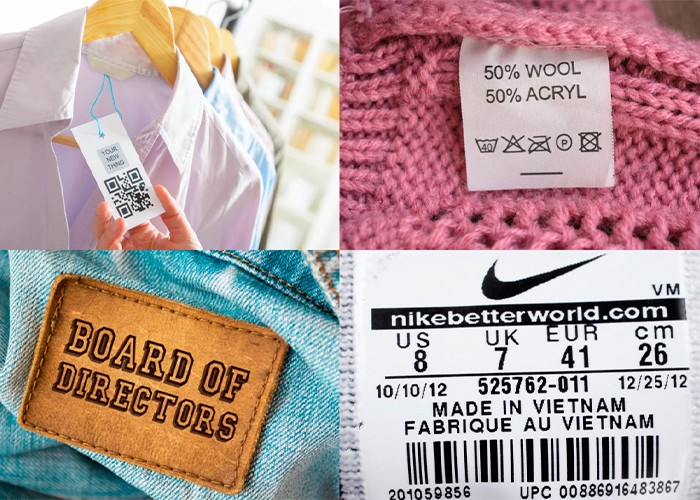 Labels for garments, washing labels for garments, inside washing labels for shoes